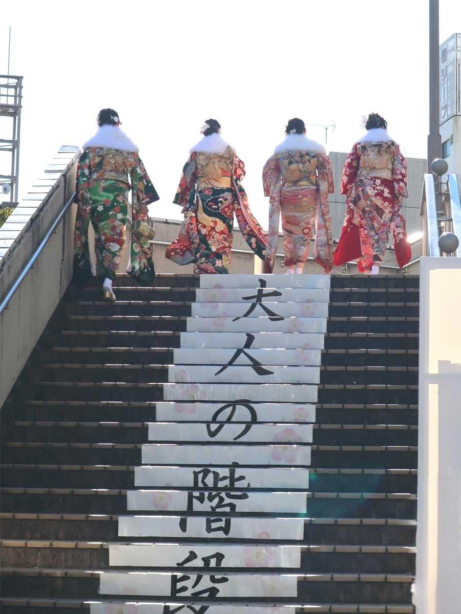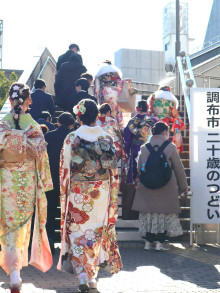 「調布市二十歳のつどい」が「成人の日」の1月12日、調布市グリーンホール(調布市小島町2)で開かれ、参加者は決意を新たにするとともに、友人との再会を喜び合った。