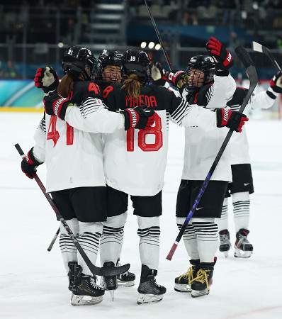 ミラノ・コルティナ五輪は6日、夜(日本時間7日未明)の開会式に先立って競技が行われ、アイスホッケー女子の日本は1次リーグB組の初戦でフランスを3―2で下し、白星発進した=ミラノ郊外 【時事通信社】