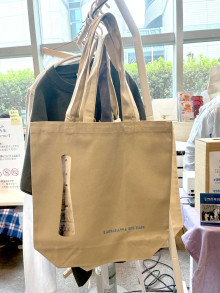 商品は、「アクリルスタンド」(1,500円)、「手ぬぐい」(1,200円)、「トートバッグ(3種)」(2,500円)、「マスキングテープ(2種)」(400円)のほか、「多摩川団地音頭Tシャツ(半袖)」(2,500円)、今回の展示会に向けてカラーリニューアルした、「死都調布」を描く漫画家・斎藤潤一郎さんの描き下ろしグッズなどを販売。同商品は、「多摩川団地音頭復元プロジェクト」のウェブショップでも扱う。