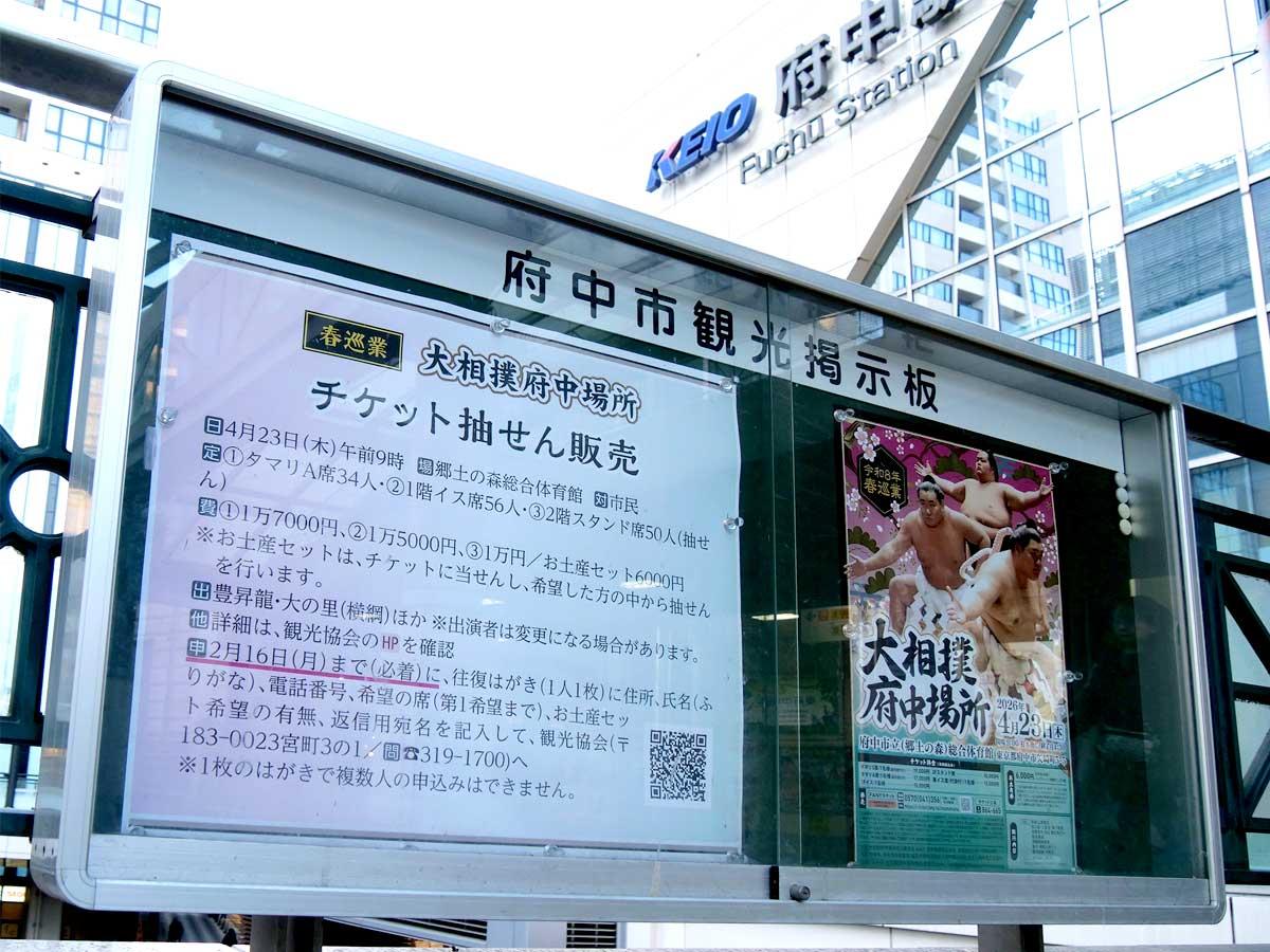 府中観光協会が現在、4月23日に開催される「令和8年度巡業 大相撲府中場所」の市民向けチケットの抽選販売を受け付けている。