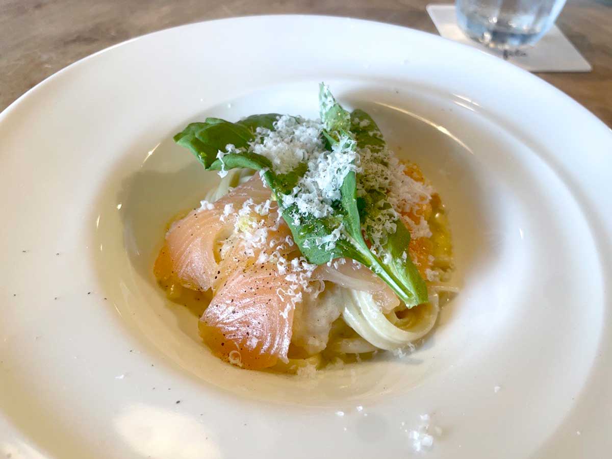 京王電鉄の実証実験で昨年提供した、トラットリア・フィーロの「奥多摩やまめの瞬間スモークとルッコラのクリームパスタ」