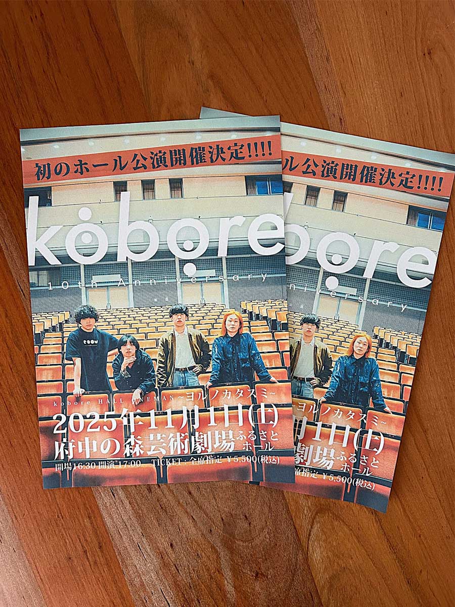 府中発の4人組ギターロックバンド「kobore(コボレ)」が11月1日、結成10年の節目に府中の森芸術劇場(府中市浅間町1)で凱旋(がいせん)公演を行う。
