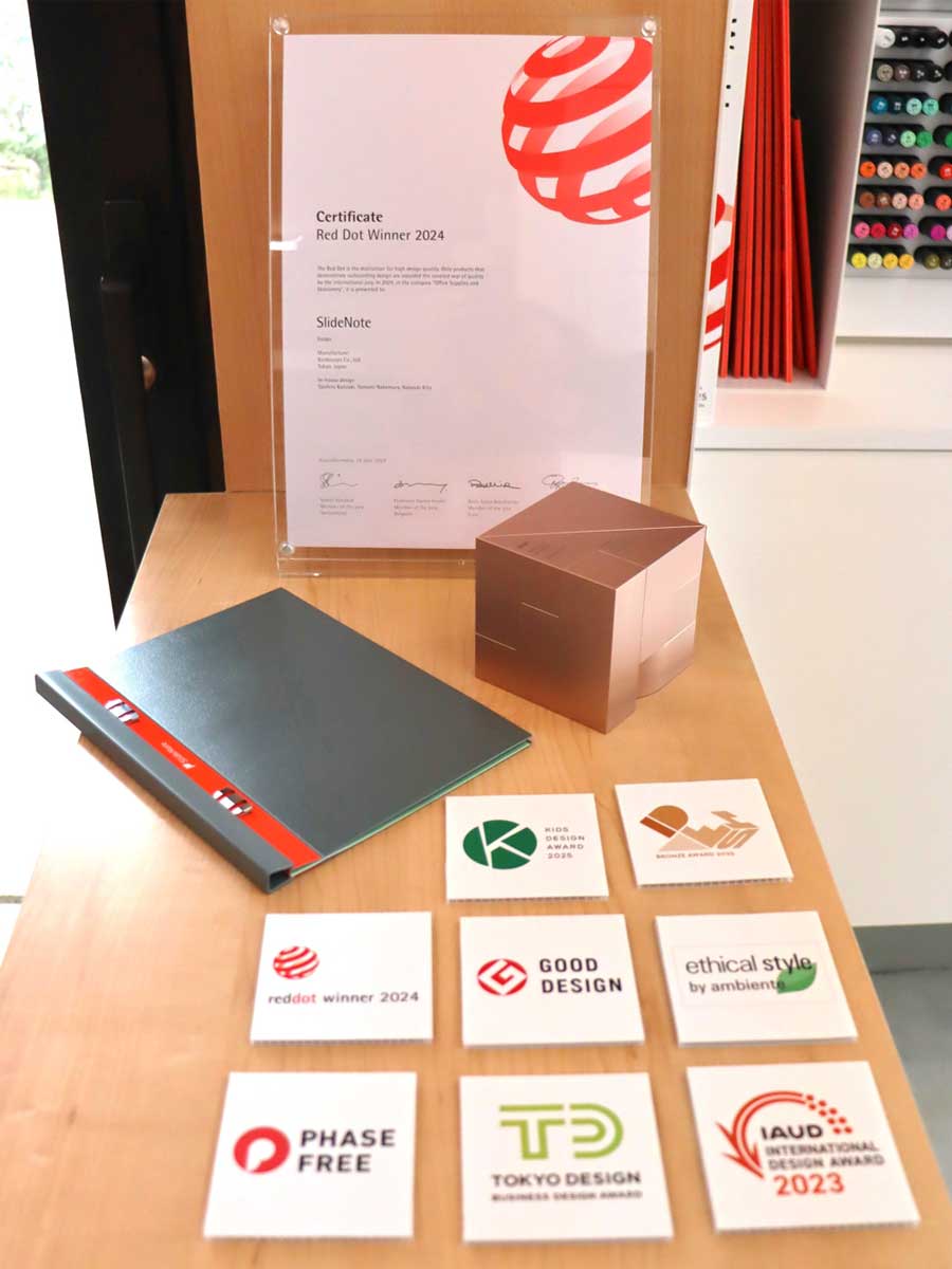 文具店「Paper & Print」で扱う「SlideNote」が受賞した賞の数々