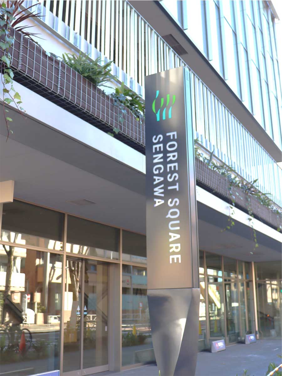フォレストスクエア仙川のロゴはそよ風に揺れる草葉がモチーフ