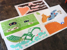 染色作家ユニット「kata kata」初の絵本『にっげろー!』の原画