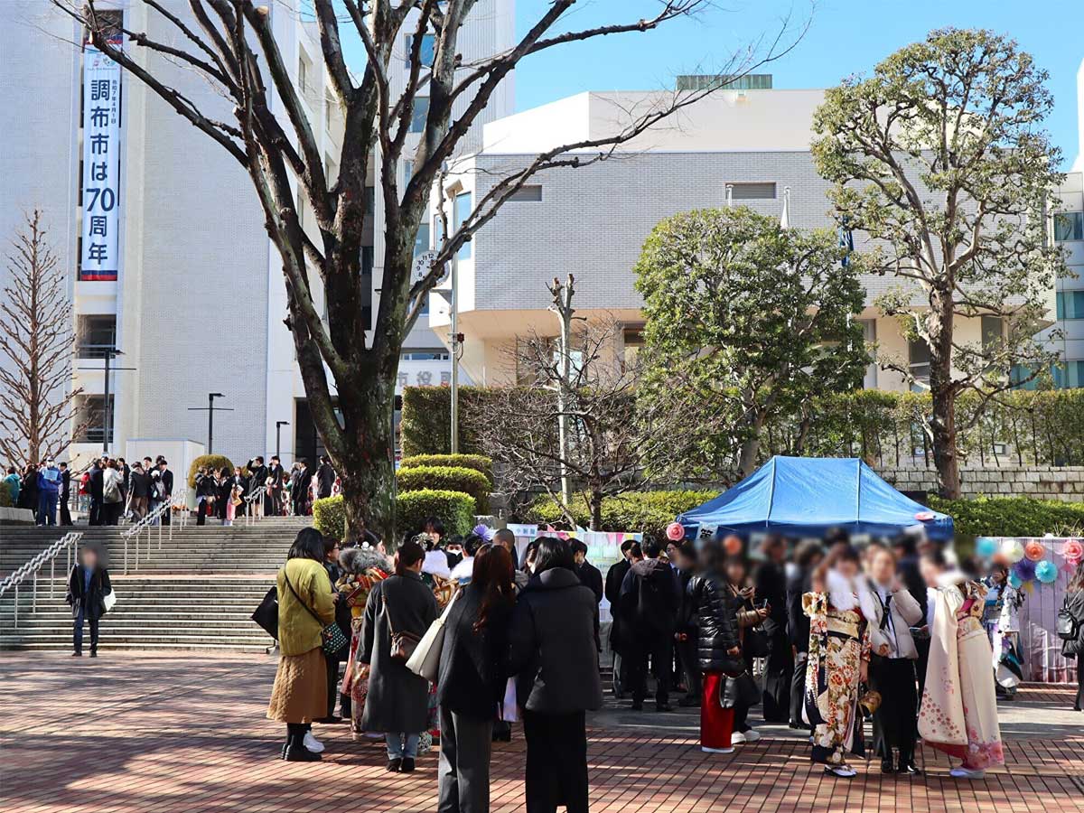 「調布市二十歳のつどい」が「成人の日」の1月12日、調布市グリーンホール(調布市小島町2)で開かれ、参加者は決意を新たにするとともに、友人との再会を喜び合った。