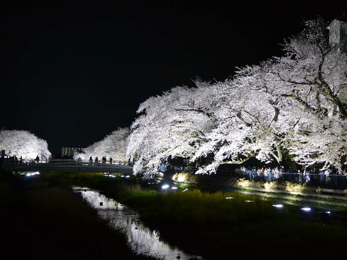 調布市佐須町付近を流れる野川で4月3日、「野川桜ライトアップ」がに行われる。