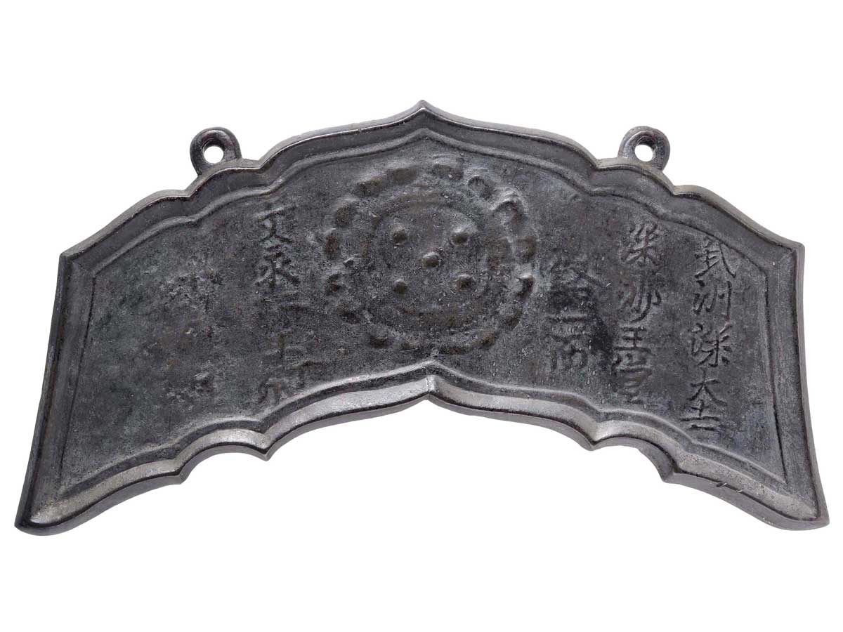 裏面。削って刻む陰刻銘ではなく、陽鋳でしるされた銘文