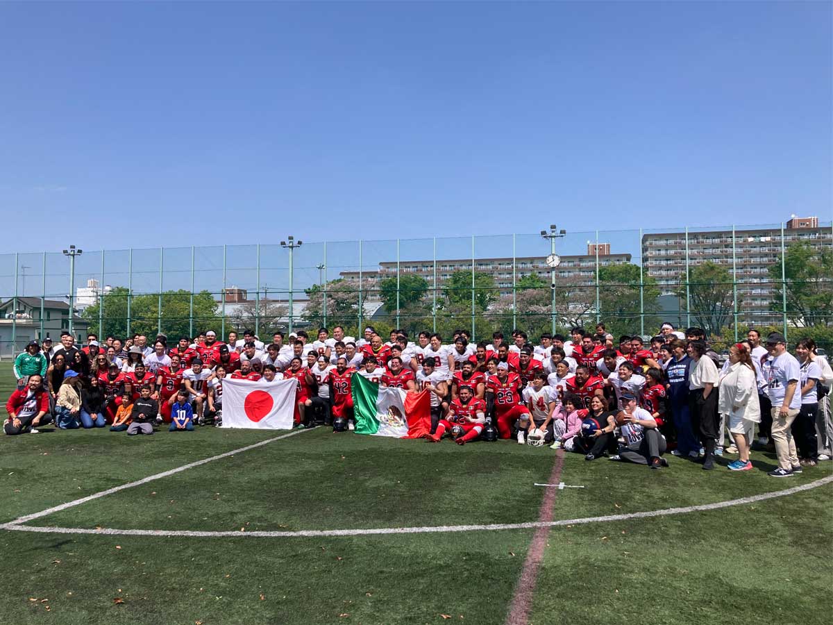 アメリカンフットボールチーム「Club TRIAX(トライアックス)調布」が4月11日、メキシコの「LEXFA Pacifico Norte選抜」チームとの親善試合を三菱養和会調布グラウンド(調布市染地2)で行った。