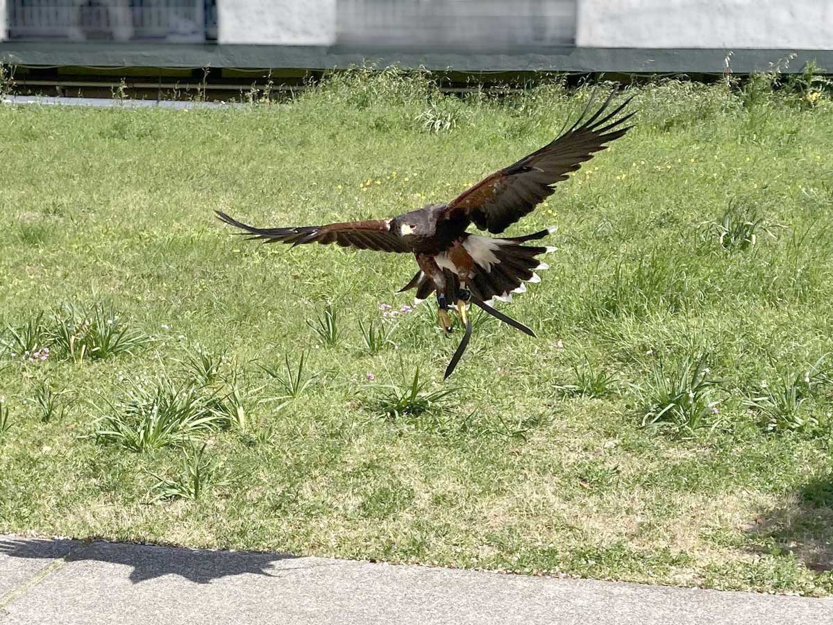 鷹匠の指示により団地の屋上やベランダまで飛び、再び鷹匠の腕まで滑空して戻ってくる
