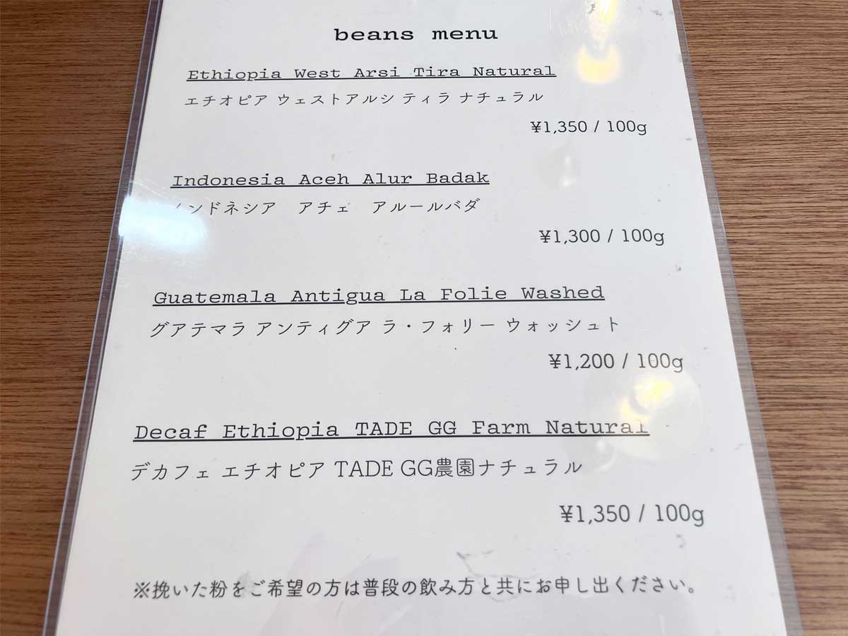 COFFEE FUNKのコーヒー豆メニュー