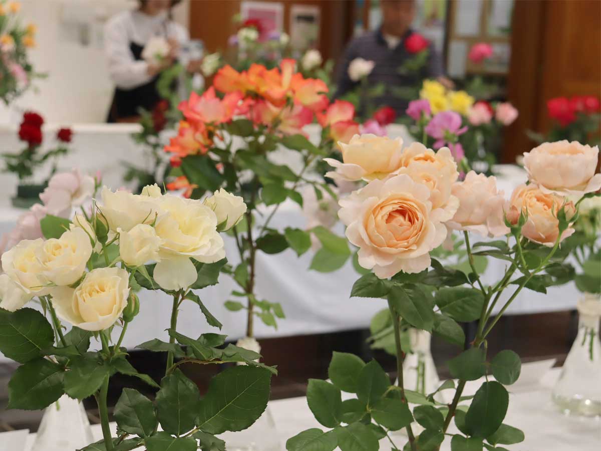 樹木であるバラの特性を活かした「春のミニバラ盆栽展(昨年の様子)