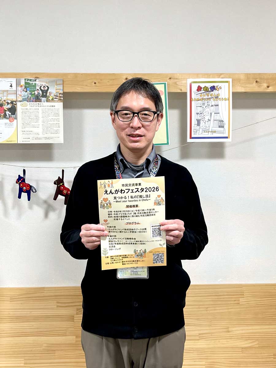 市民活動支援センター長の田島誠さん 市民活動支援センターえんがわ文庫にて