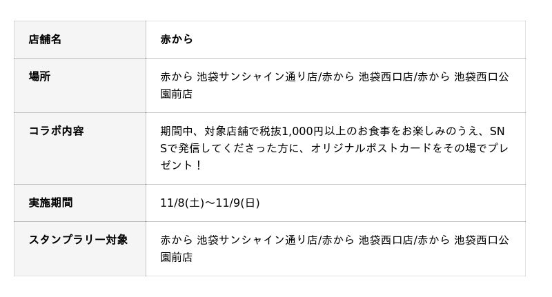 引換場所:サンシャインシティアルタ B1フロア ※スタンプラリー交換窓口を設置します