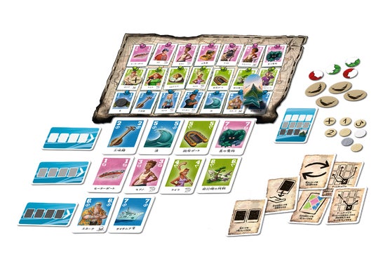 カラーカード21枚、スペシャルカード6枚、グリッドカード4枚、コマ22個、ゲームボード1枚、ルールブック1冊、ログブック1冊
