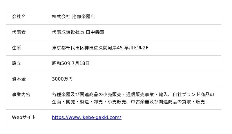 本取り組みを通じて、池部楽器店とフェアステージは、社会人になってから初めて楽器に触れる人はもちろん、より多くの方が音楽を始め、仲間とともに継続的に楽しめる環境づくりを進めていきます。バンド活動を一部の経験者だけのものではなく、より身近で開かれたカルチャーとして広げていくことで、音楽を「聴くもの」にとどめず、「自ら参加して楽しむもの」として親しめる人を増やし、より多くの方が音楽の喜びを実感できる世界を目指します。